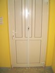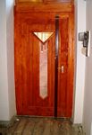 Jó megoldás a robosztus, acél szerkezetű ajtó, acél tokkal, alul, felül, és a két oldalán, erős csapokkal a tokba reteszelő zárral.