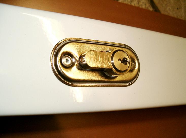 A zár két irányban, az oldalfalakba két-két darab, húsz milliméter átmérőjű krómozott acél nyelvvel záródik.