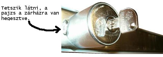 Ahogy látni tetszenek, a zár az ajtólap síkjában van, se csavar se egyéb bontható rögzítési pont nem látszik, a zárbetét nem hozzáférhető, nem törhető, nem fúrható, nem roncsolható.